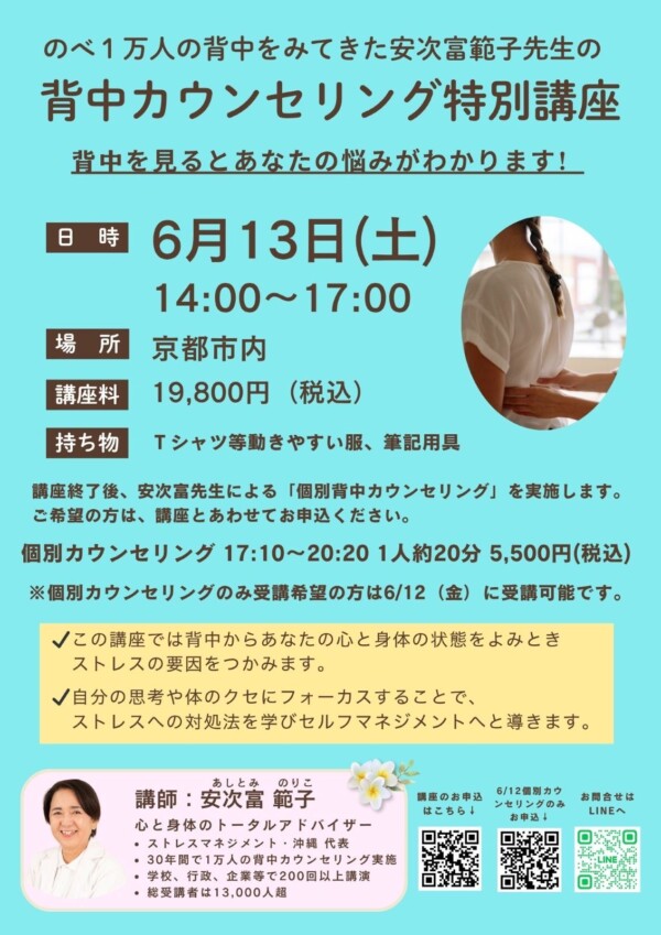 ■特典 講座終了後、「先生による個別背中カウンセリング」も受けられます!